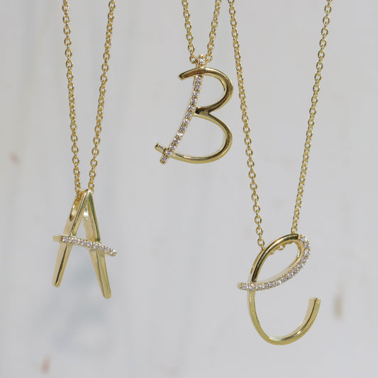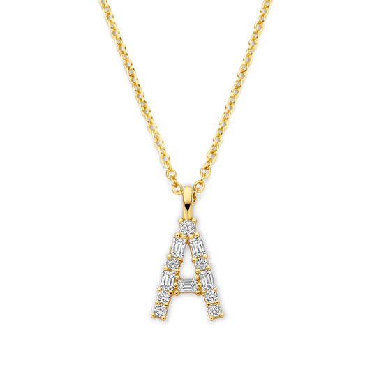 Collier Buchstabe mit Zirkonia, aus 925er Silber, vergoldet