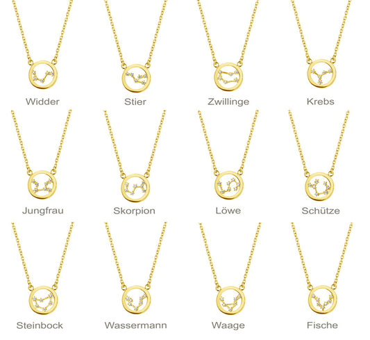 Collier mit Sternzeichen Anhänger aus 925er Silber und Zirkonia, vergoldet