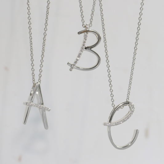 Collier Buchstabe mit Zirkonia, aus 925er Silber, rhodiniert