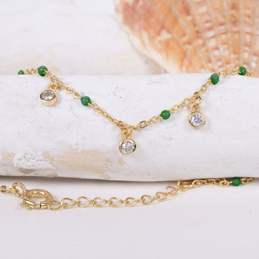 Armband mit 3 Zirkonia und Perlen aus 925er Silber, vergoldet